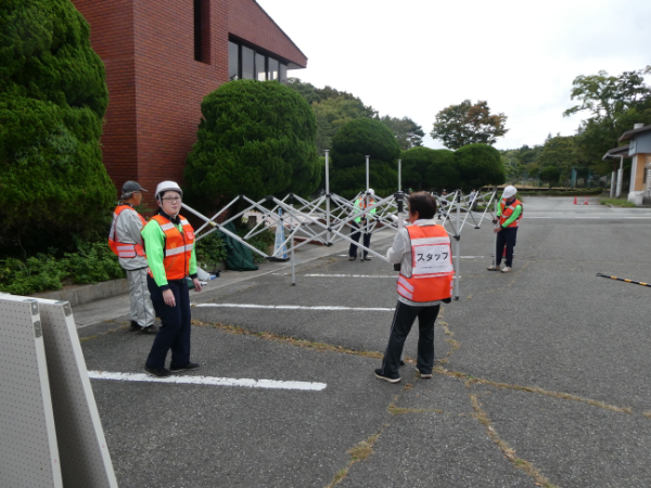 当日は、協力ボランティア、民生委員、役場職員と一緒にセンターを立ち上げ、運営を行いました。訓練を通して、課題等が見えてきたので、訓練の重要性を改めて感じられました。