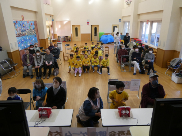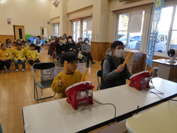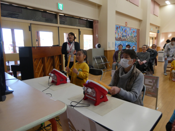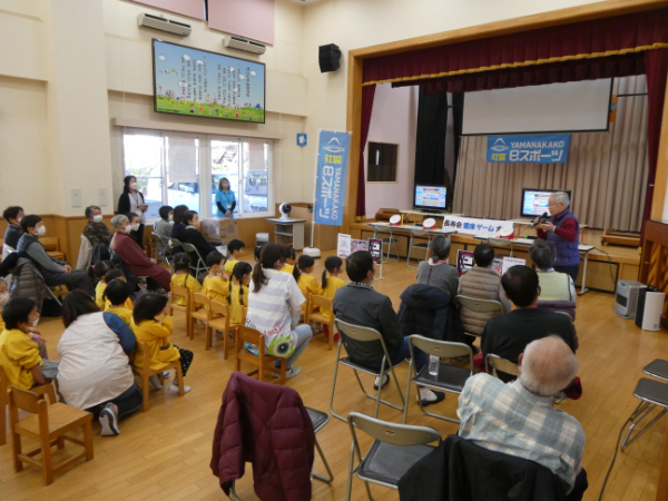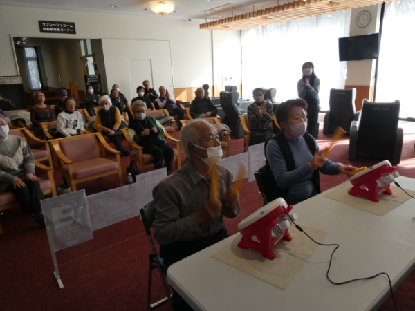 長寿会員を対象に健康ゲーム大会「LEGEND CUP2025」地区予選会を12月15日(月)山中保育所、平野保育所で開催しました。総勢41名が参加され、園児と一緒に太鼓のゲームを楽しくプレイしました。大会では園児の声援を受けながら、各地区代表4名が決定され、17日(水)の決勝大会に進みました。